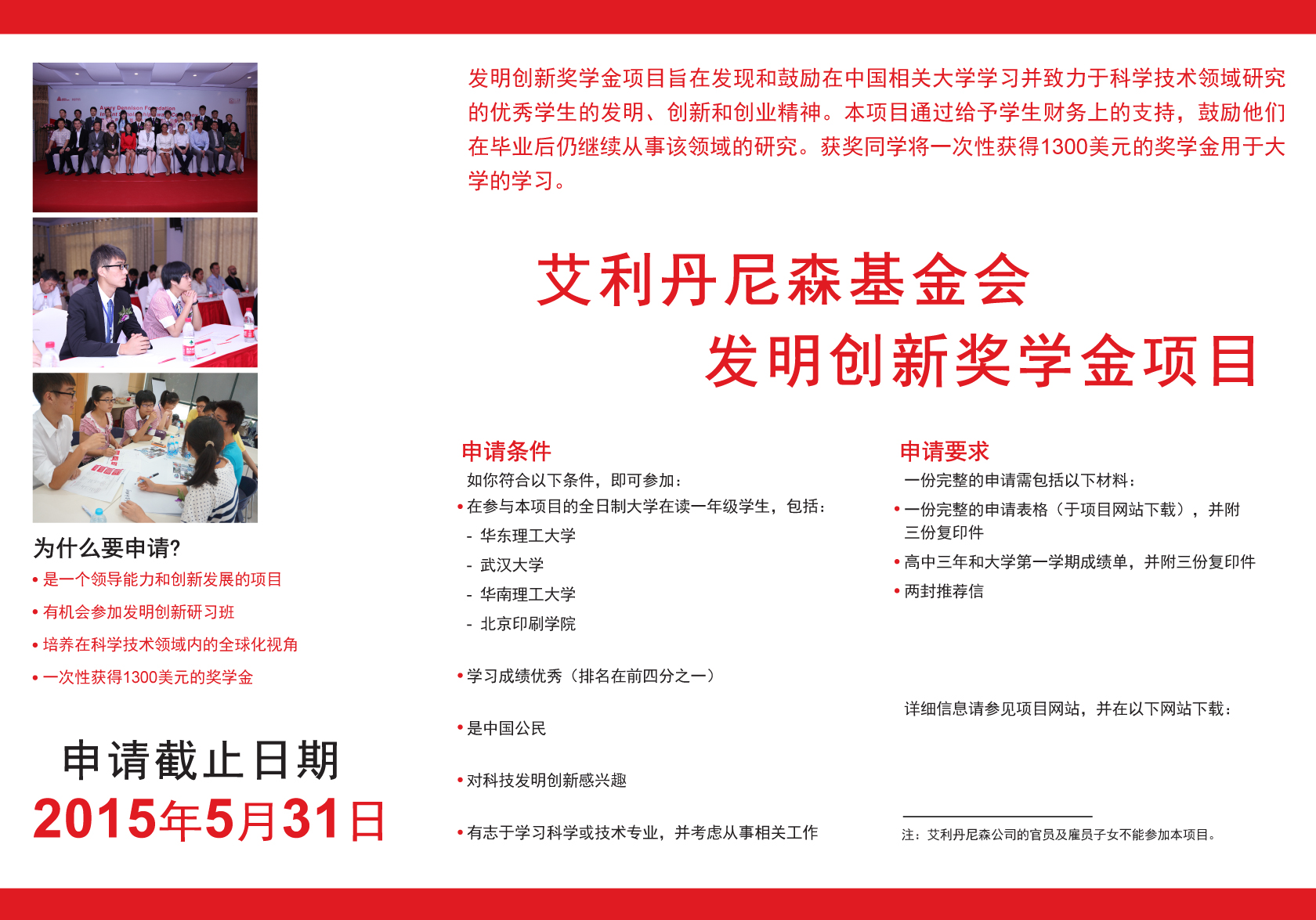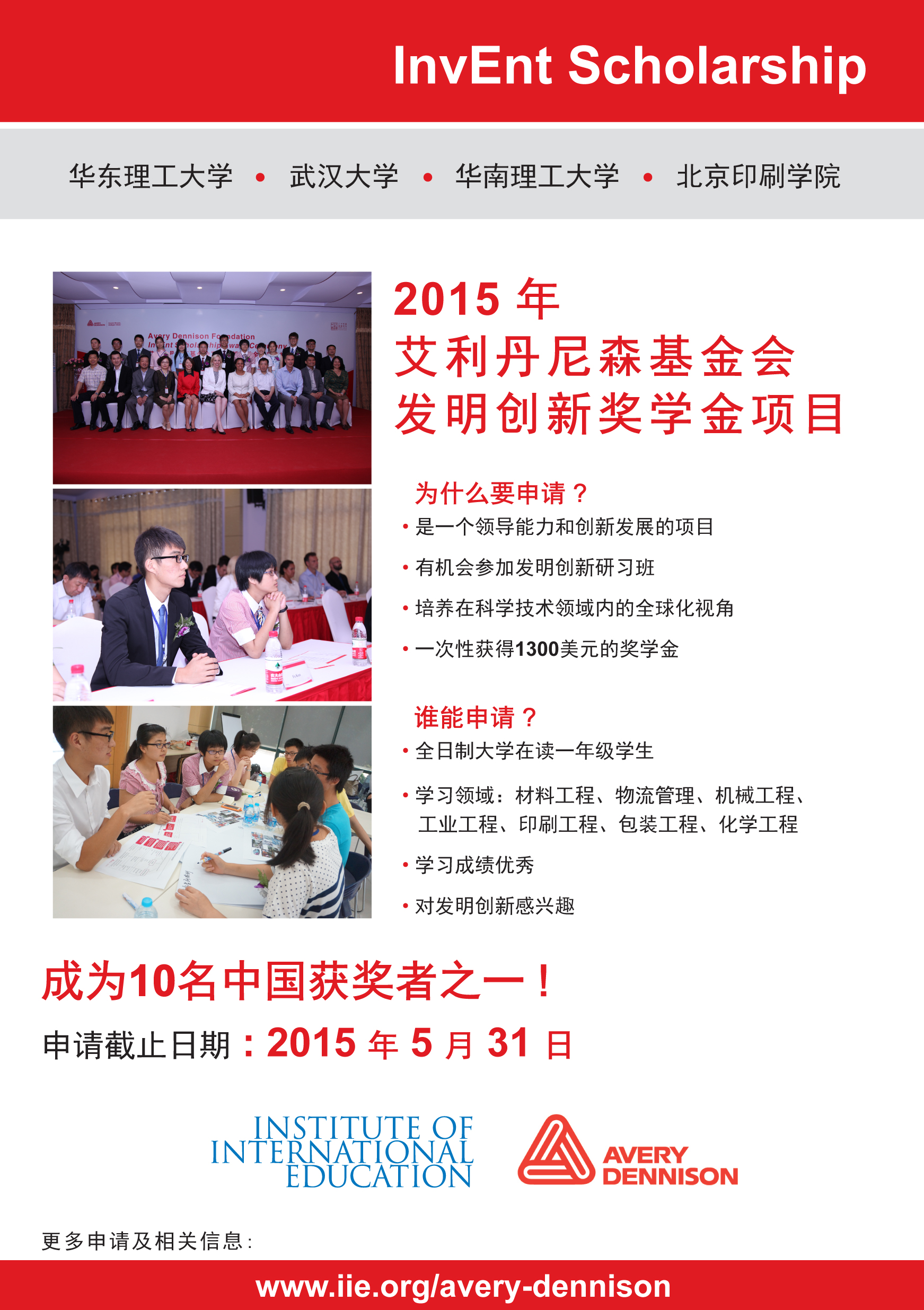 具体要求请看附件的宣传材料以及申请表,另外,申请表可以在www.iie.org/avery-dennison 下载,