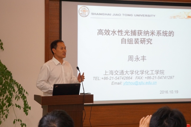 在徐汇校区实验三楼102会议室,颜德岳、周永丰分别作了题为“超分子光捕获体系”及“小分子纳米抗肿瘤药物”的学术报告。报告会由李春忠主持,田禾院士和学校部分教师、研究生聆听了报告。