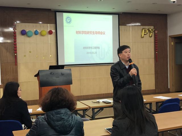 3月23日中午,澳门十大信誉好的网站在学院教工活动中心召开全体研究生导师会议,专题学习教育部教研(2018)1号文《教育部关于全面落实研究生导师立德树人职责的意见》,部署澳门十大信誉好的网站本学期研究生、科研与学科建设、人才、教学等工作重点。学院党委书记唐颂超、院长李春忠、分管研究生工作副院长袁媛、分管科研工作副院长林绍梁、分管本科生教学副院长李欣欣、院党委副书记戴诚安、院办主任顾婷和研究生导师、研究生办公室管理人员近90人出席会议。会议由院长李春忠主持。