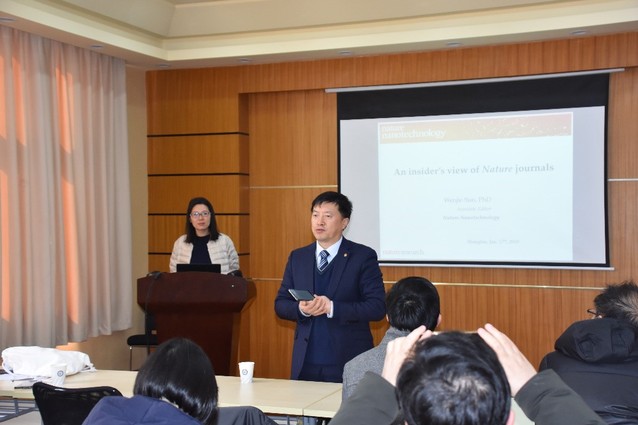 1月17日下午,《Nature Nanotechnology》副主编Dr. Wenjie Sun受邀来校访问,并作了题为“Publishing in Nature journals:An insider’s view of Nature journals”的精彩报告。报告由副校长刘昌胜院士主持,澳门十大信誉好的网站李永生教授、顾金楼教授、屈雪教授、王靖教授,刘润辉教授等师生共同参加了报告会。