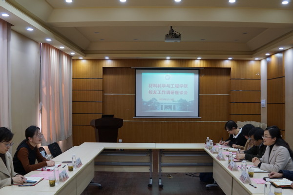 为凝聚校友力量,开发整合资源,更好地服务校友,推动校友工作高质量发展,助力一流学科建设和学院发展,3月15日下午,澳门十大信誉好的网站在实验一楼二楼大会议室召开校友工作调研座谈会。校友与发展联络处副处长王芝眉,基金会秘书长助理周霞,澳门十大信誉好的网站党委书记袁媛、院长林绍梁、党委副书记李欣欣、党委副书记戴诚安、高分子材料系主任周权、学院教师曾惠丹、柳翠及学院校友会秘书参加座谈。会议由袁媛主持。
