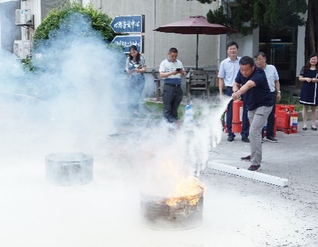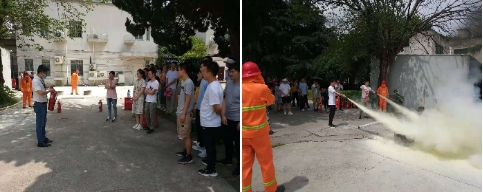 随后,学院在实验一楼东门外的空地上开展了灭火演练。段凯洋老师向大家讲解了灭火器的基本知识和使用要点。校保人员点燃起两个着火桶,每位教师都拿起灭火器进行了操作练习。在练习过程中,校保人员不时提醒操作规范,并纠正错误动作。