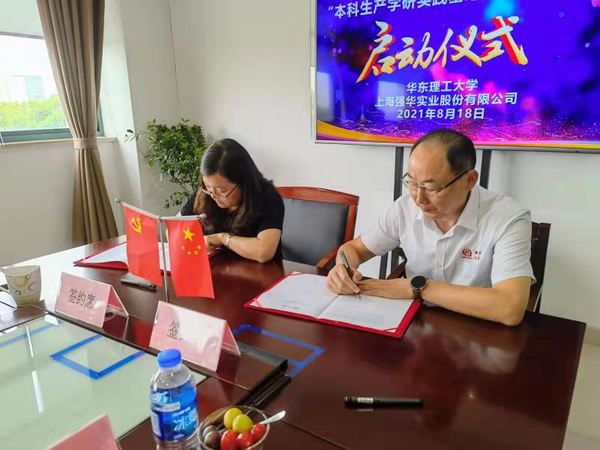 2021年8月18日,华东理工大学与上海强华实业股份有限公司本科生产学研实践基地签约及揭牌仪式成功举行,漕泾镇党委书记陈立俊、漕泾镇副镇长王红亮、漕泾工业区总经理李礼、强华股份总经理周文华、强华股份战略决策咨询顾问韩宝富、强华股份Etch项目负责人周韦军,华东理工澳门十大信誉好的网站党委书记袁媛、无机材料系主任赵崇军、原系主任王以群等出席了本次仪式。