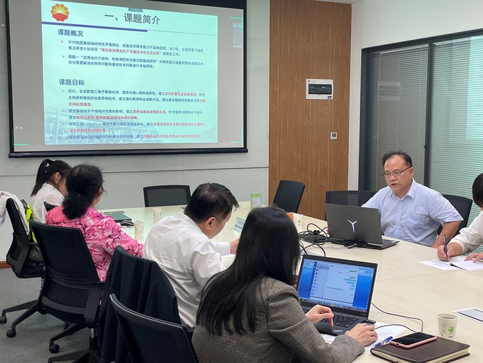 首先,王桂芝副总工程师和曹媛媛工程师分别对课题绩效评估和审计的要求进行了说明。随后课题负责人米普科教授就课题“高品质润滑油分子结构、性能调控和关键过程基础研究”的研究进展进行了汇报,与会人员进行了热烈的讨论。最后,项目负责人马安副院长对课题所取得的成果表示充分的肯定和赞扬,并对课题后续验收工作进行了安排。会中,华东理工大学副校长朱为宏,材料与科学学院院长林绍梁与马安副院长就项目的进展和后续的安排进行了交流。