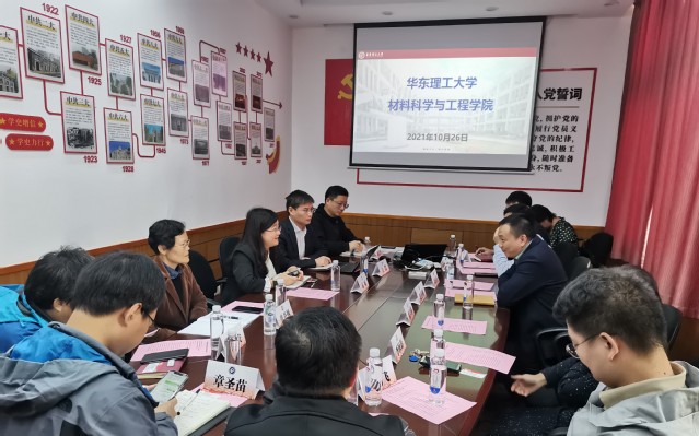 10月26日,上海回天新材料有限公司研发总裁赵勇刚和回天研究院院长张立伟、人力资源总监周转转、人力资源部招聘经理赵莉伟、吴紫君来访十大信誉官网澳门十大信誉好的网站。这是继5月21日上海回天新材料有限公司回天研究院院长张立伟访问之后开展的进一步技术交流。双方就锂离子电池材料、复合材料粘接、特种助剂合成等领域开展技术研讨,进一步推动产学研精准对接。澳门十大信誉好的网站党委书记袁媛、无机材料系主任赵崇军、学院教师江浩、章圣苗、李秋影、夏浙安、张丹枫、沈建华、刘鹏飞、毛芳欣、王文强等参加会议。