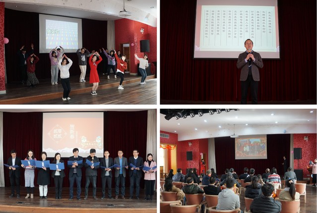 学院教师带来了舞蹈《教师阵线联盟》、戏曲《空城计》、各组室精心准备了《新春祝福》视频。学院党政联席会成员通过贺新春朗诵,回顾2021年建党百年,学院师生戮力同心、锐意进取,加强党的全面领导,夯实党建根基,开展党史学习教育,强化理论武装,聚焦作风建设,推进巡察整改,改版学院网站,强化阵地建设,搭建校友交流平台,推进党建业务融合;筹建国家重点实验室,强化基地建设,凝炼学科方向,统筹推进“双一流”建设;强化人文关怀,健全制度规定,加强导师队伍建设,围绕立德树人,坚持以本为本,聚焦专业建设;强化安全教育,统筹做好常态化疫情防控工作;注重工会、教代会、学术委员会的作用发挥,推进党员领导干部与党外教师联谊交友,凝聚各方力量共谋学院发展。