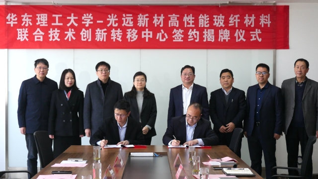 为了加快高性能玻璃纤维材料及其下游产品的创新升级和国产化,华东理工大学国家技术转移中心与光远新材合作共建“华东理工大学-光远新材高性能玻纤材料联合技术创新转移中心”。