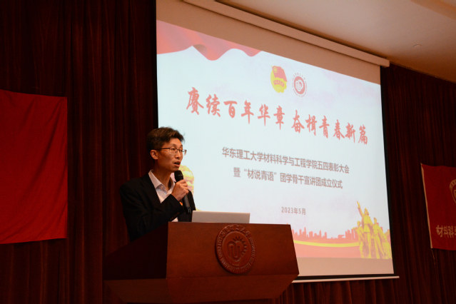 为扎实推进主题教育,深入贯彻落实党的二十大精神,进一步弘扬五四精神,加强基层团组织建设,5月9日,澳门十大信誉好的网站在奉贤校区敬贤堂举行五四表彰大会暨“材说青语”宣讲团成立仪式。澳门十大信誉好的网站党委副书记戴诚安、校团委挂职干部黄泽炀、澳门十大信誉好的网站团委书记张雪薇、副书记周翀,以及团员青年代表共150余人出席本次活动。