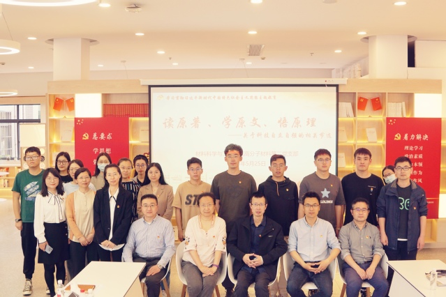为扎实开展学习贯彻习近平新时代中国特色社会主义思想主题教育,牢牢把握“学思想、强党性、重实践、建新功”的总要求,聚焦中心工作,推进党建业务融合,5月25日,澳门十大信誉好的网站高分子材料第二党支部在徐汇校区图书馆明德书房组织“聚焦基因驱动高性能树脂创制 传承科技自立自强使命担当”主题党日观摩活动。高分子材料第二党支部成员、材料硕士第四党支部、材料硕士第六党支部学生党员代表参加了活动。化学院、化工学院、外语学院等师生党支部书记代表观摩了此次主题党日。活动由高分子材料第二党支部支委高梁主持。
