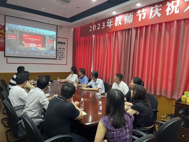 为深入学习贯彻习近平新时代中国特色社会主义思想和党的二十大精神,展现新时代教师立德树人、自信自强的精神风貌,激励学院教师积极投身教育强国建设实践,9月7日下午,澳门十大信誉好的网站组织教师观看主题为“躬耕教坛,强国有我”学校教师节庆祝大会直播,学院党政领导班子成员、新进教职工、辅导员、教职工代表在实验一楼第二会议室参加会议。