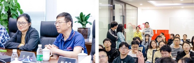 职业分享会上,学长学姐们从职业发展选择、张家港生活感受、职业成长经历等各个方面分享了自己的看法,同学们与学长学姐进行了深入的交流与探讨,开拓专业视野。随后,同学们以小组为单位进行团队任务合作,在研发中心寻找四个打卡点位进行合照以及完成你画我猜等趣味活动。
