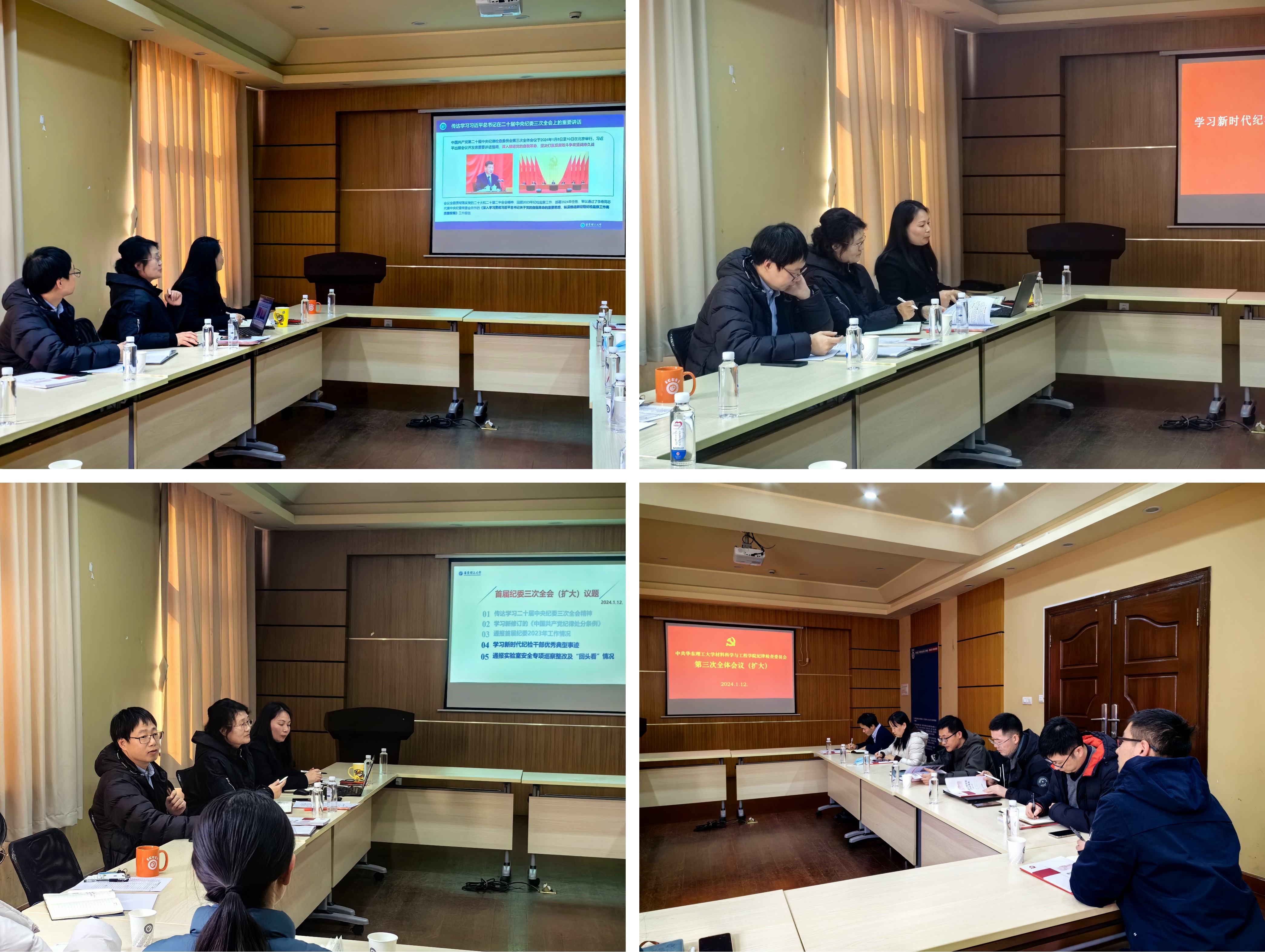 2024年1月12日,中国共产党华东理工大学澳门十大信誉好的网站首届纪律检查委员会第三次全体(扩大)会议在实验一楼第一会议室召开,全体纪委委员、教工党支部纪检委员、专职组织员出席会议。会议由澳门十大信誉好的网站纪委书记苏建玲主持。