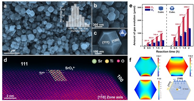 近日,十大信誉官网澳门十大信誉好的网站清洁能源材料与器件团队在光分解纯水制氢材料晶面结构设计与创制方面取得新进展,以晶态氧化物SrTiO3为模型材料,在固相合成体系中可控制备出大比例暴露优势晶面的高质量单晶催化剂。相关成果以“Crystal Facet Engineering on SrTiO3 Enhances Photocatalytic Overall Water Splitting”为题在线发表在《美国化学会志》(J. Am. Chem. Soc.)上。