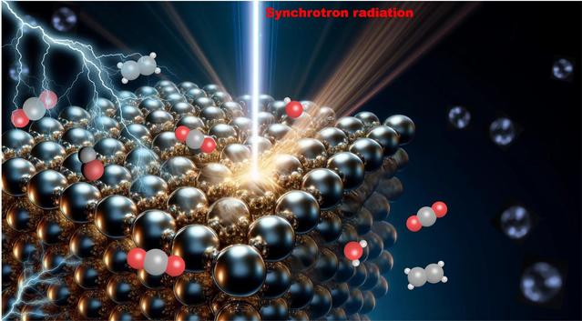 图1 原位/工况同步辐射分析技术应用于CO2/CO还原反应示意图。