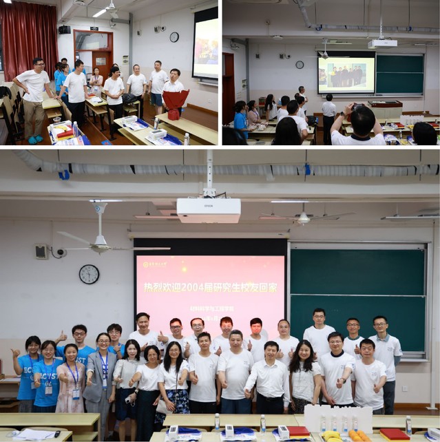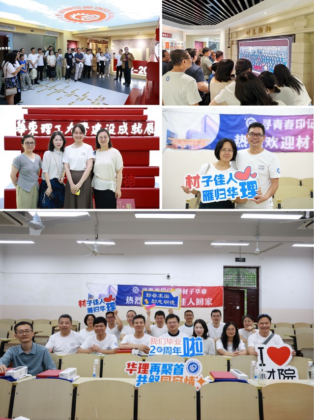 部分校友20年未见,其中有几位校友带着孩子从美国飘洋过海、跨越万里相聚华理,久别重逢,格外开心。伴随着“寻青春印记 谱材子华章”青春相册视频,新生入学班级团建、宿舍谈心、操场拔河、毕业答辩、穿着学位服在学院门前合影,一张张老照片把记忆拉回到曾经的青葱岁月,让大家欢声笑语不断又感慨万分。