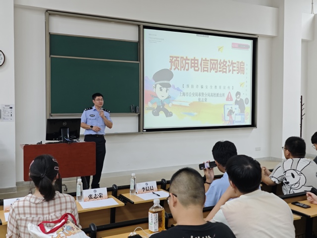 9月5日,澳门十大信誉好的网站2024级研究生新生校史学习和安全培训会在奉贤校区D200举行。上海市公安局奉贤分局高校派出所张志荣警官和校安全环保办公室李晨晨受邀作辅导讲座。会议由研究生辅导员娄梦蝶主持。