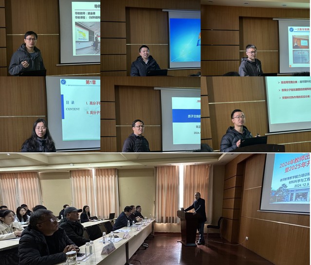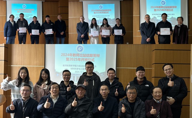 2024年12月9日,澳门十大信誉好的网站在实验一楼第一会议室举办青年教师教育教学培训基地结业答辩汇报暨2025级入站开班仪式。国家教学名师唐颂超、澳门十大信誉好的网站副院长顾金楼、高分子材料专业责任教授李欣欣、高分子材料系主任周权、无机材料系副主任孙金煜担任答辩评委,即将出站和进站的全体青年教师出席了本次活动,活动由孙金煜主持。