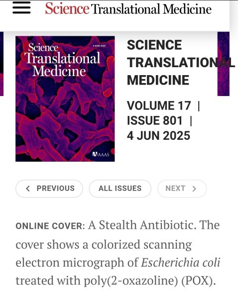 近日,十大信誉官网澳门十大信誉好的网站刘润辉教授课题组报道了一种感染部位原位激活的宿主防御肽模拟前药设计策略,所开发的抗菌前药可有效治疗耐药阴性菌感染。该研究成果以“A host defense peptide-mimicking prodrug activated by drug-resistant Gram-negative bacterial infections”(一种由耐药阴性菌感染激活的宿主防御肽模拟前药)为题发表在国际权威学术期刊《科学·转化医学》,并被选为当期正封面文章(Sci. Transl. Med.2025, DOI:10.1126/scitranslmed.adl4870)上。