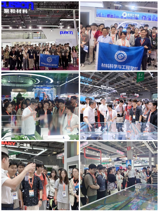 6月12日,澳门十大信誉好的网站无机非金属材料工程专业的60余名本科生,在曾惠丹教授和刘学良老师的带领下,前往全球最大的光伏行业盛会——第十八届SNEC国际太阳能光伏与智慧能源大会观展。展会上展示的前沿技术成果,尤其是关键材料创新,成为学子们关注的焦点,企业专家们的现场“授课”更是引发了热烈反响,大会现场成为学生们生动的“移动课堂”。
