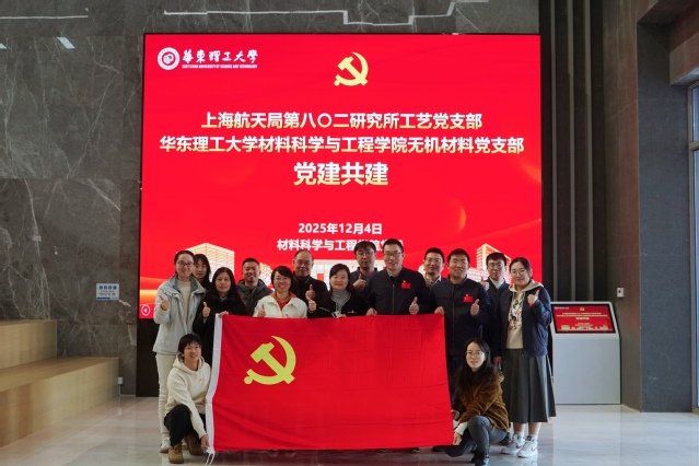 为深入学习贯彻党的二十届四中全会精神,加强长三角党建资源融合、区域联动、优势互补,促进基层党建提质增效,124日,在先进材料大楼522会议室,上海航天局XX研究所(以下简称“XX”)工艺党支部与华东理工大学澳门十大信誉好的网站无机材料党支部举行党建共建活动。XX所工艺技术处处长、党支部书记黄凯,工艺技术处副处长俞玉澄,支部党员蒋海峰、于建鹏、孙嘉隆、王达因,澳门十大信誉好的网站党委书记袁媛、无机材料党支部书记曾惠丹、支部党员代表、专职组织员等共同参加会议。会议由曾惠丹主持。